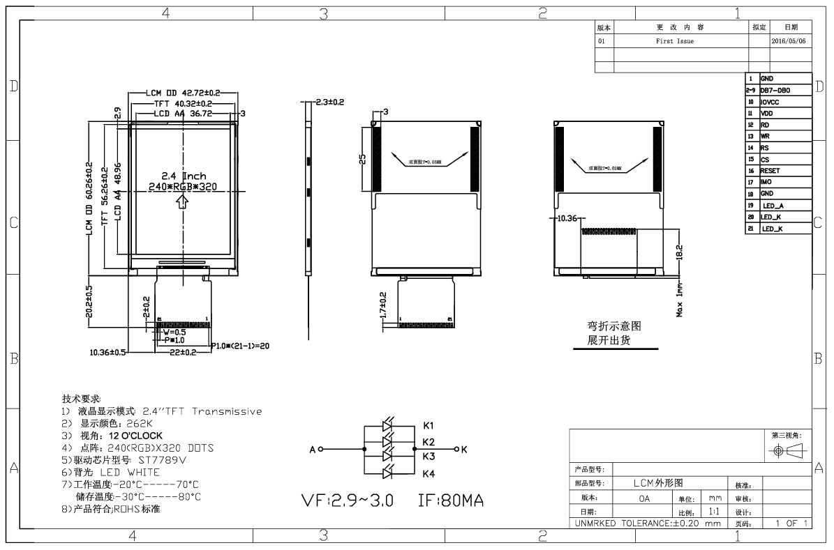 Parametras Q2424TC77118A7 (TFT-LCD su ST7789V tvarkyklės IC)