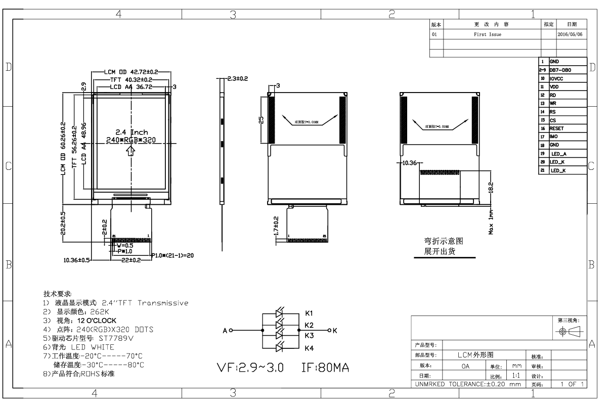 „Tianfu“ pritaikyta 2,7 colio grafinio standartinio TN TFT LCD ekrano modulio specifikacija