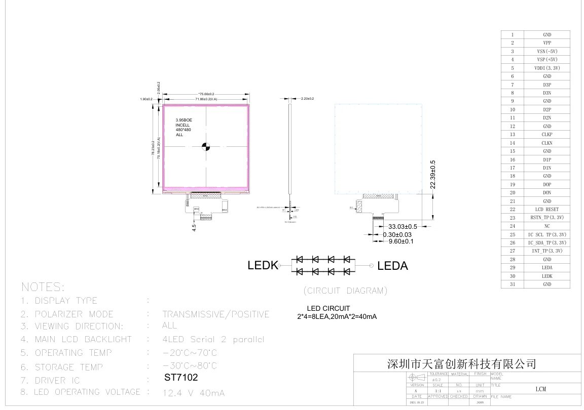 3,95 colio mažos galios IPS plonas jutiklinio ekrano modulis veikia stabiliai plačiame temperatūrų diapazone nuo -30°C iki +80°C ir pasižymi pramoninio lygio patvarumu. Kompaktiškas 75,66 x 78,23 x 2,2 mm dizainas, palaikantis dvi MIPI/IIC sąsajas, leidžia lengvai priderinti prie įvairių scenarijų – nuo ​​plataus vartojimo elektronikos iki pramoninio valdymo. Sujungus didelės raiškos vaizdą su patikimu veikimu, tai idealus ekranas jūsų įrenginiams!