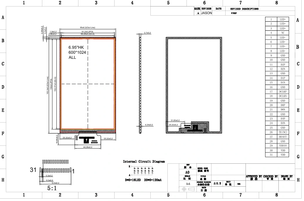 6,95 colio didelės skiriamosios gebos IPS TFT LCD ekrano modulis pasižymi 6,95 colių TFT LCD ekranu, kurio aukšta skiriamoji geba yra 600 X RGB x 1024 pikselių, didelis 350 CD/m² ryškumas ir aukšto kontrasto santykis 700: 1. Kartu su viso vaizdo kampo ekrano technologija, 6,95 colių didelės skiriamosios gebos IPS TFT LCD ekrano modulis suteikia aiškių ir ryškių vaizdų iš bet kurio kampo. Stabiliai ir efektyviai transmisijai naudojama greitaeigė MIPI sąsaja, palaiko plačią veikimo temperatūros diapazoną nuo –10 ° C iki 60 ° C ir yra labai patikimas, todėl jis tinka įvairių išmaniųjų prietaisų rodymo poreikiams.
