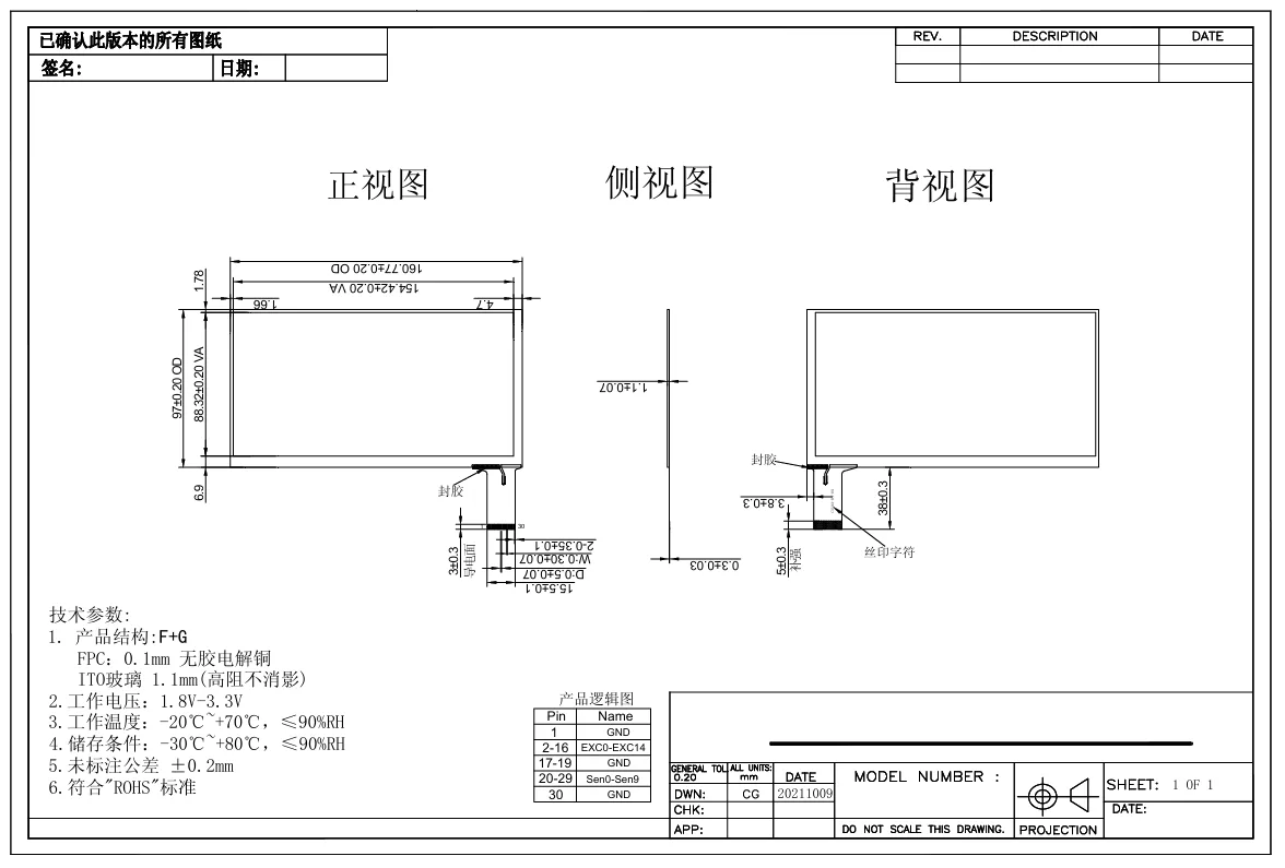 97,00 × 160,77 × 1,10 mm (jutiklio kontūras; leistina nuokrypa: ±0,20 mm)